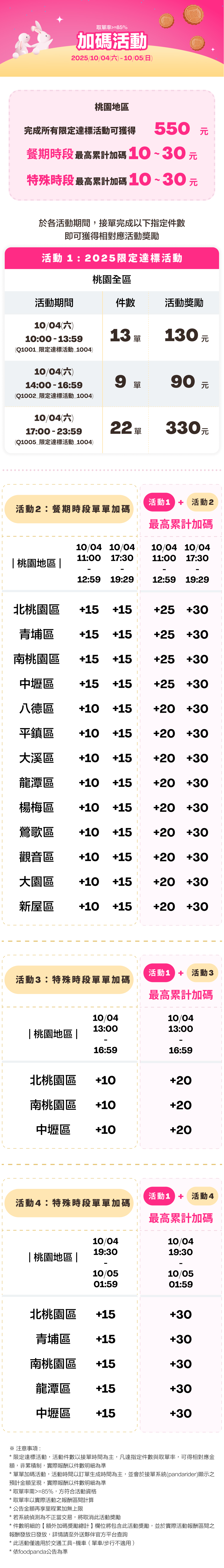 【桃園地區】2025/10/04(六)~10/07(二)加碼活動