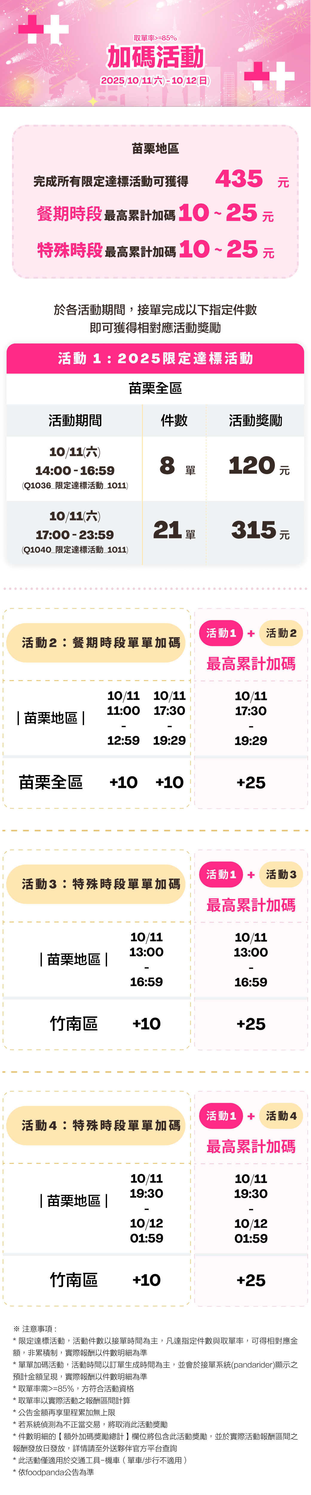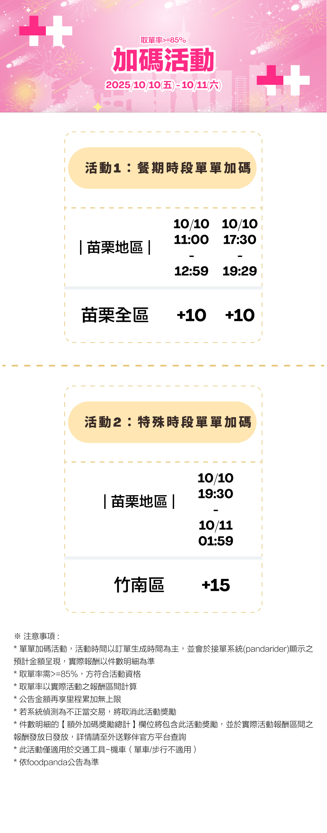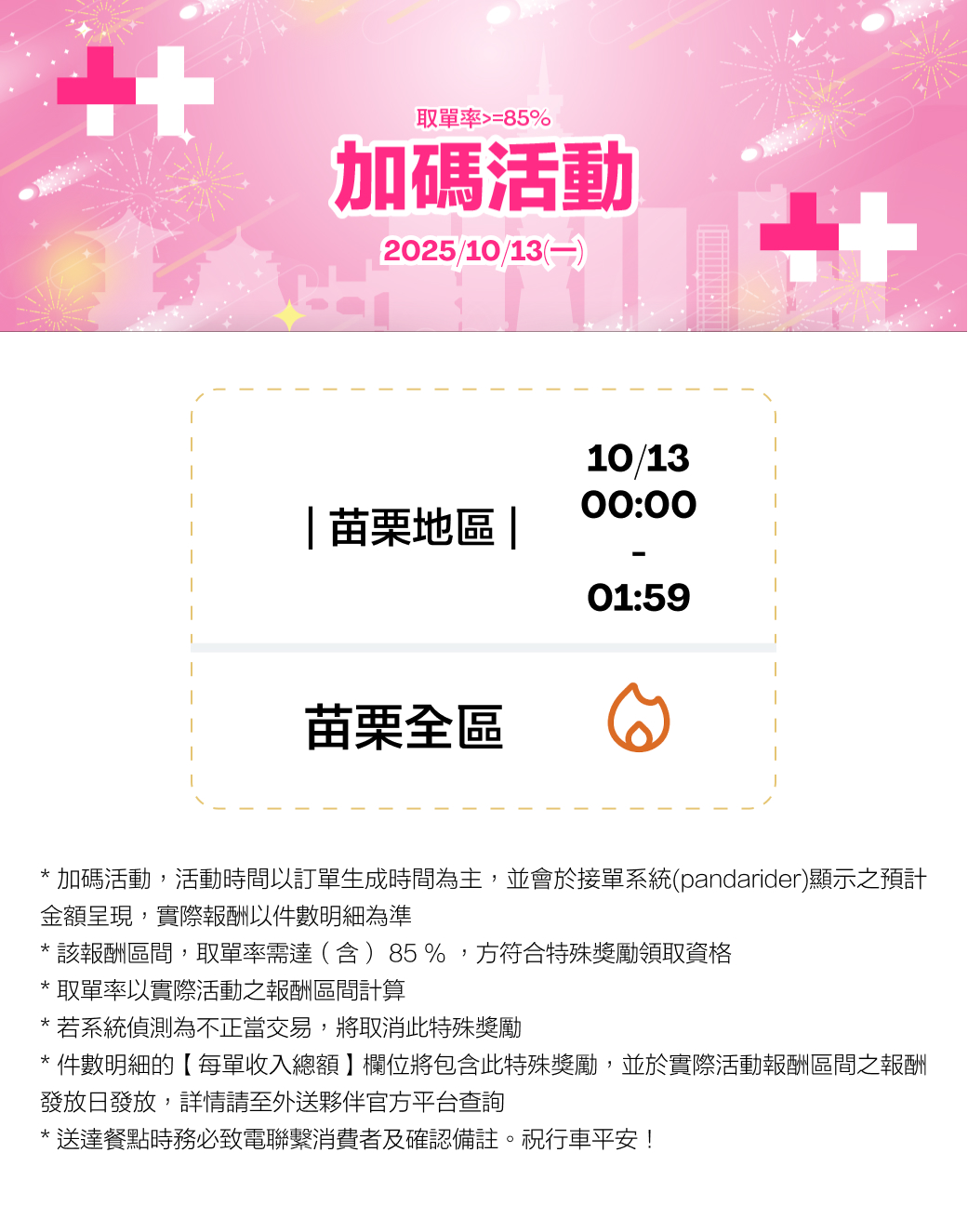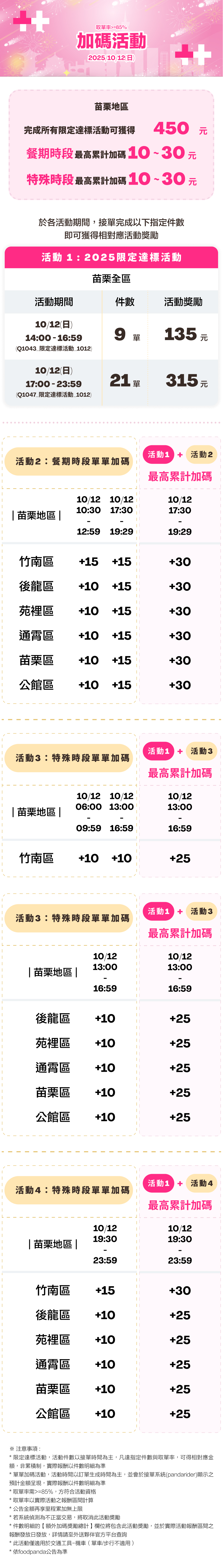 【苗栗地區】2025/10/10(五)~10/13(一)加碼活動