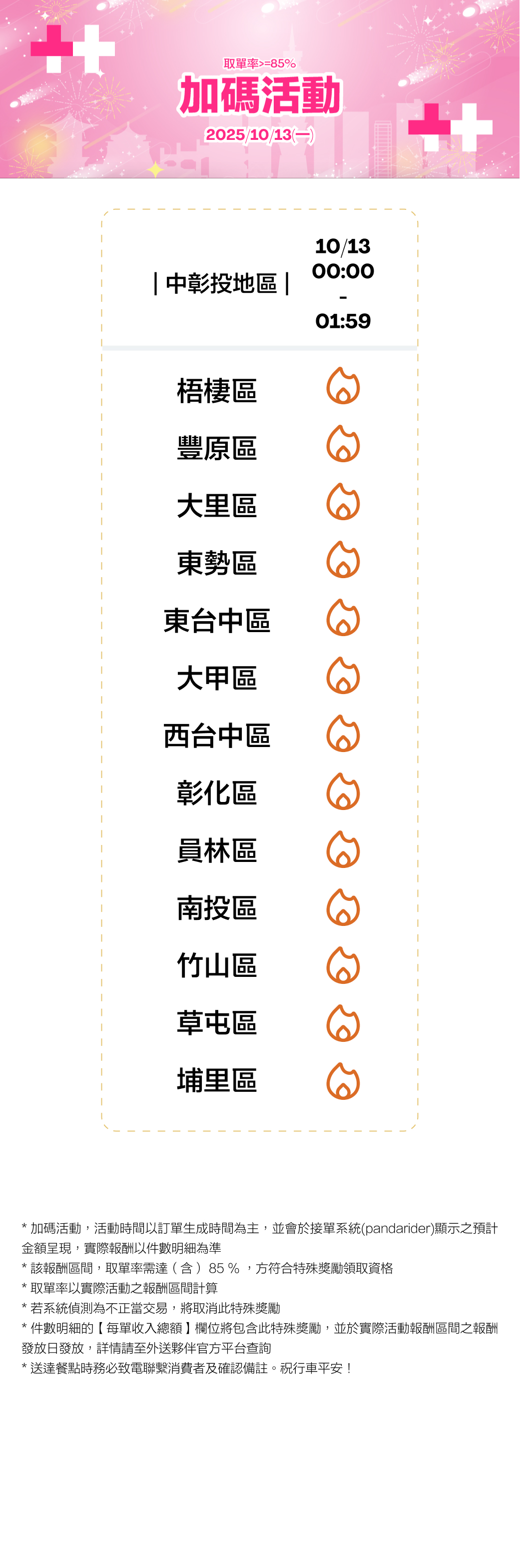 【中彰投地區】2025/10/10(五)~10/13(一)加碼活動
