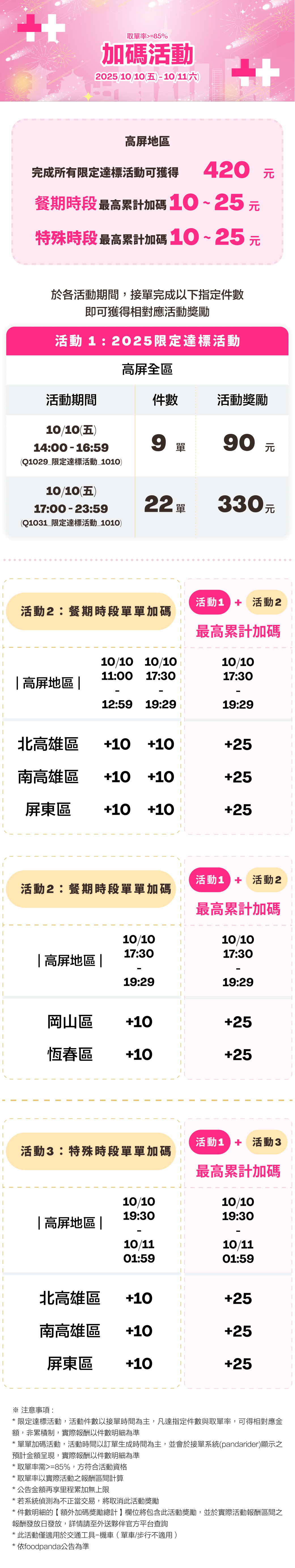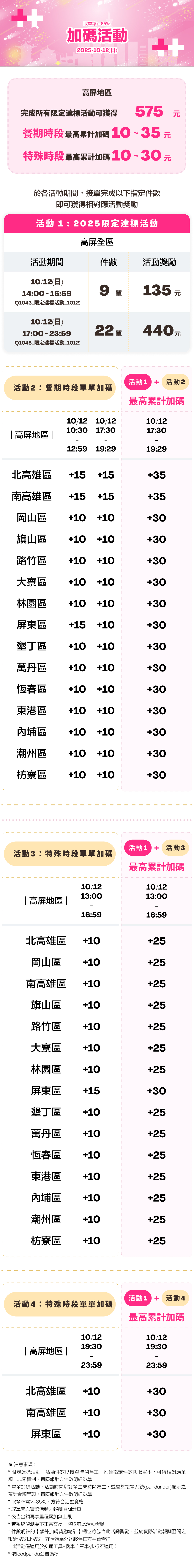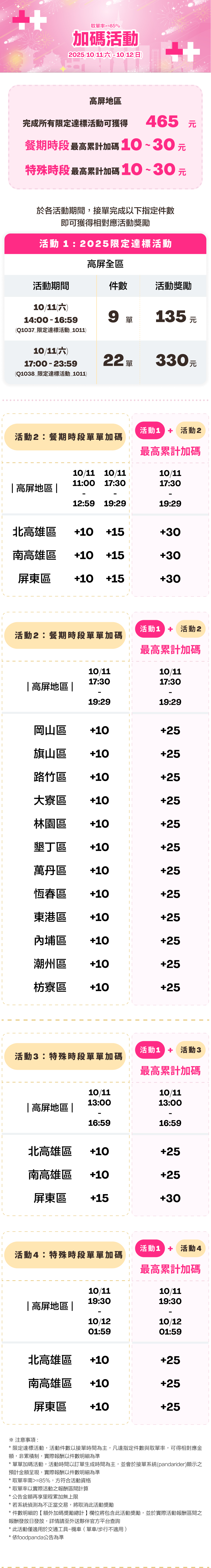 【高屏地區】2025/10/10(五)~10/13(一)加碼活動