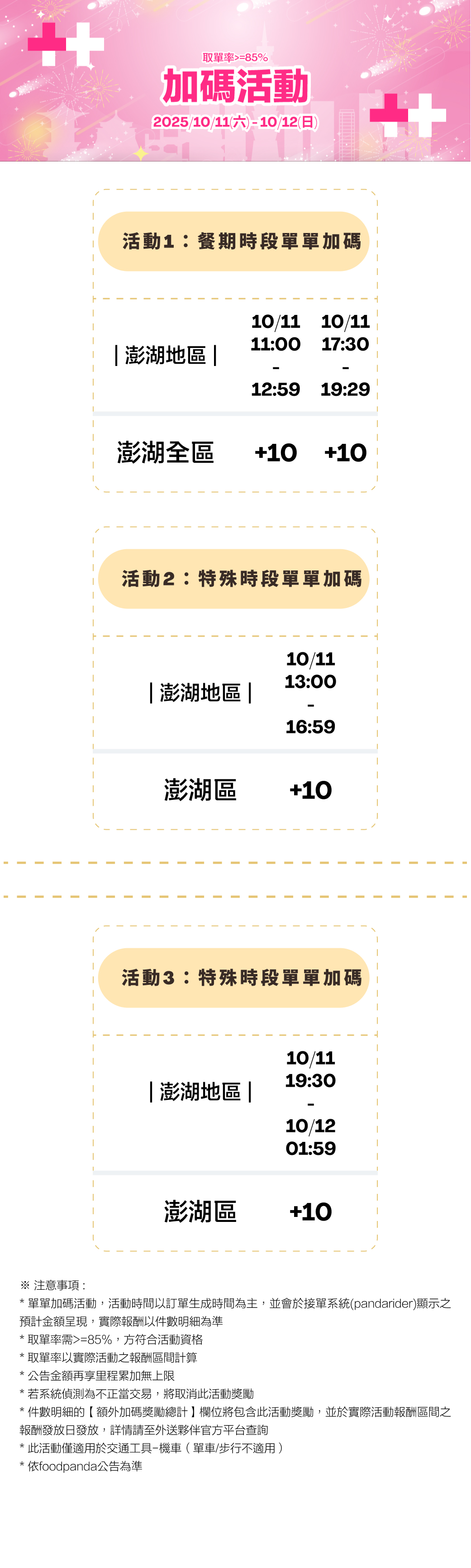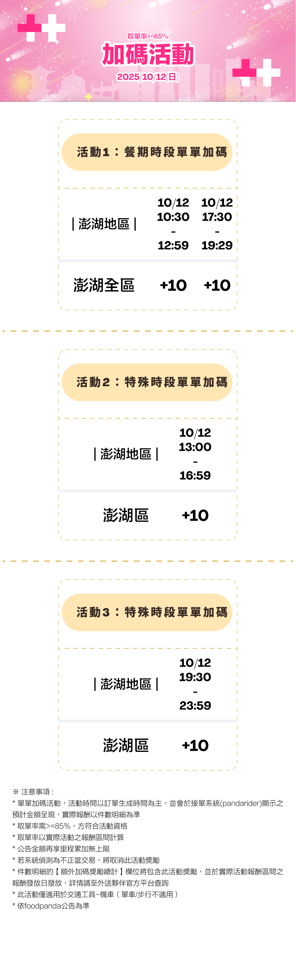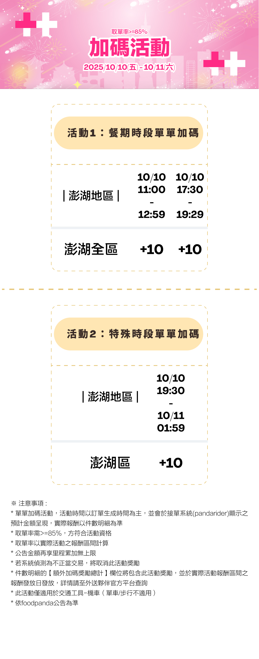 【澎湖地區】2025/10/10(五)~10/13(一)加碼活動