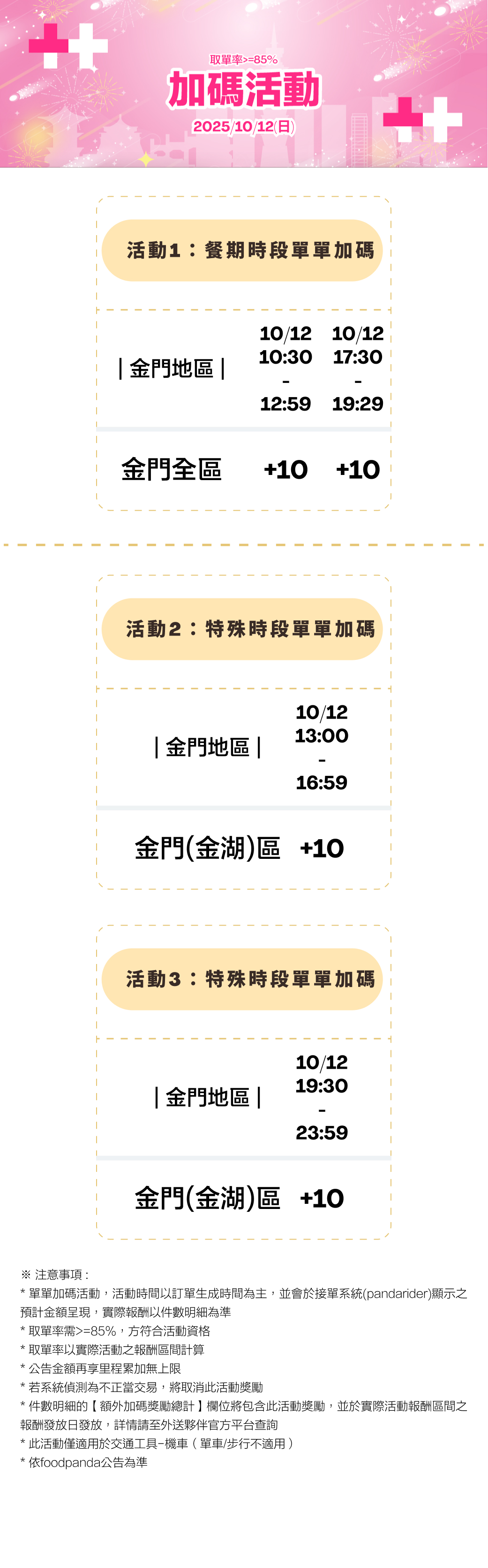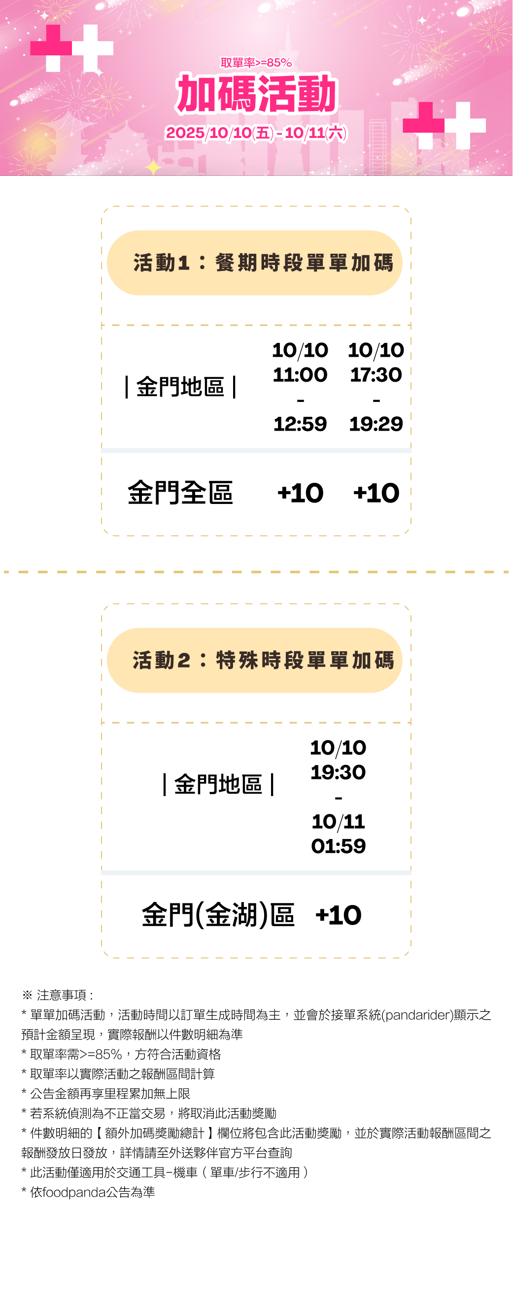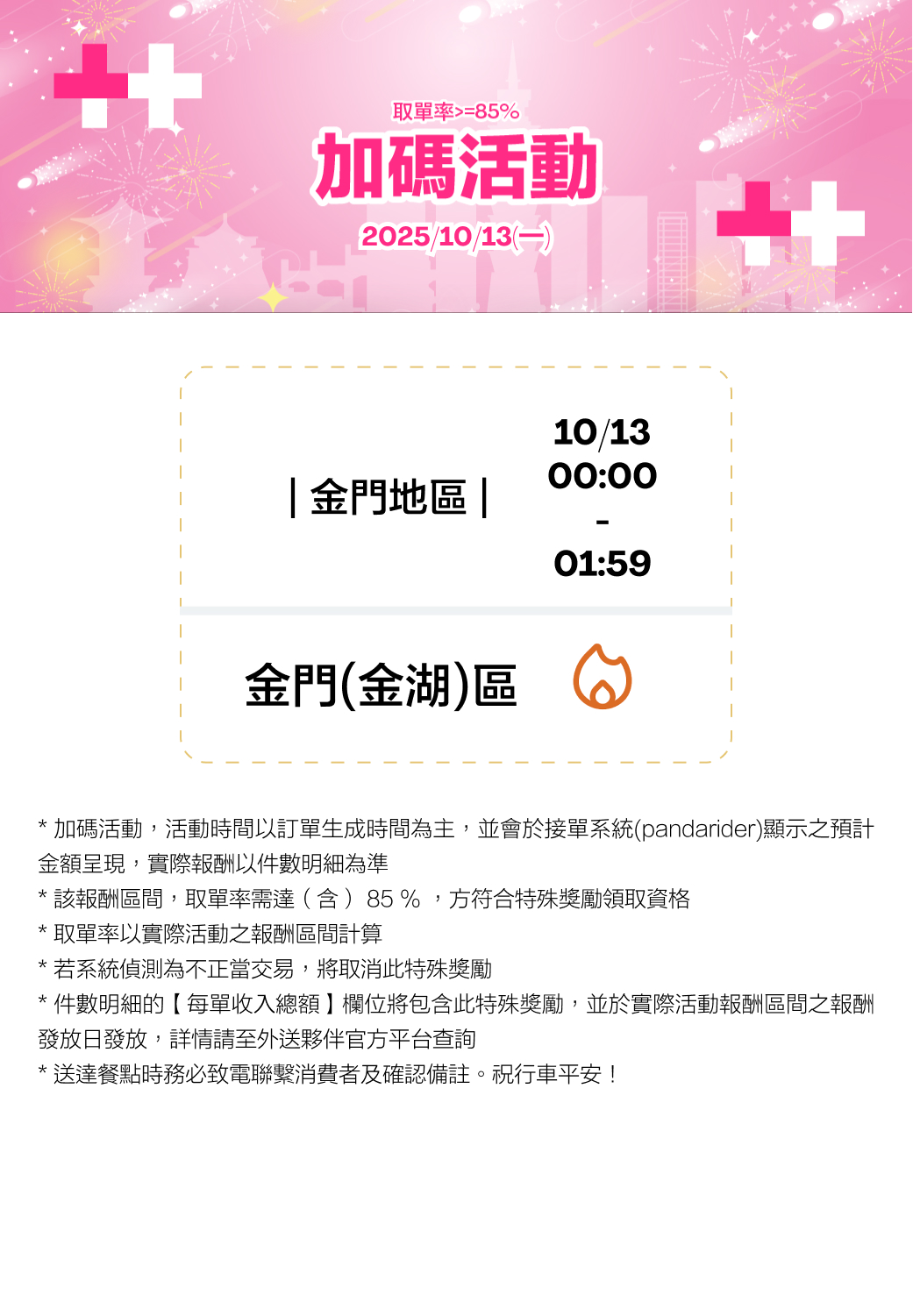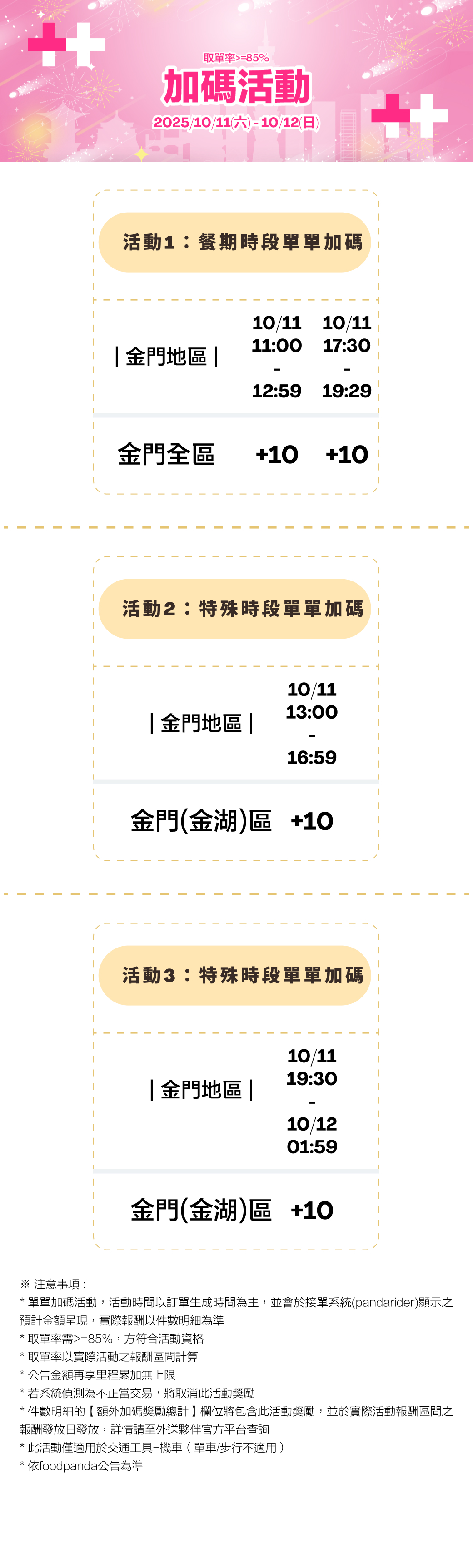 【金門地區】2025/10/10(五)~10/13(一)加碼活動