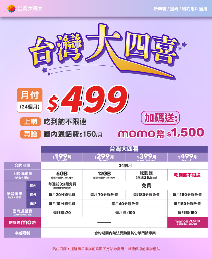 *月租499,網路吃到飽! *網路申辦快速方便!