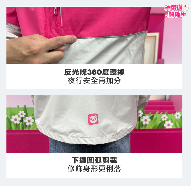 2️⃣小雨擋、多風拒,六口袋開掛!夜行反光下擺圓弧細節有在顧👀