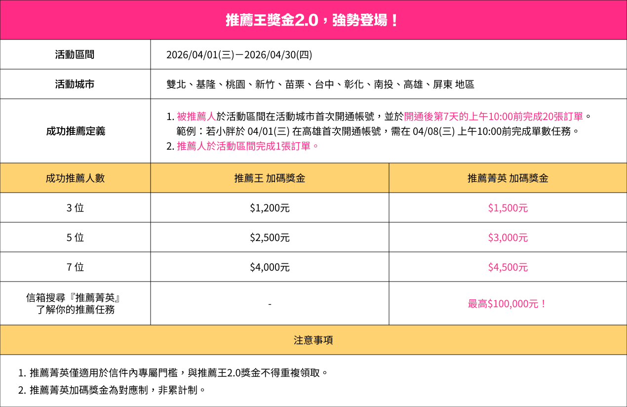 最終獎金金額以【活動獎金通知-4月推薦】通知為主。