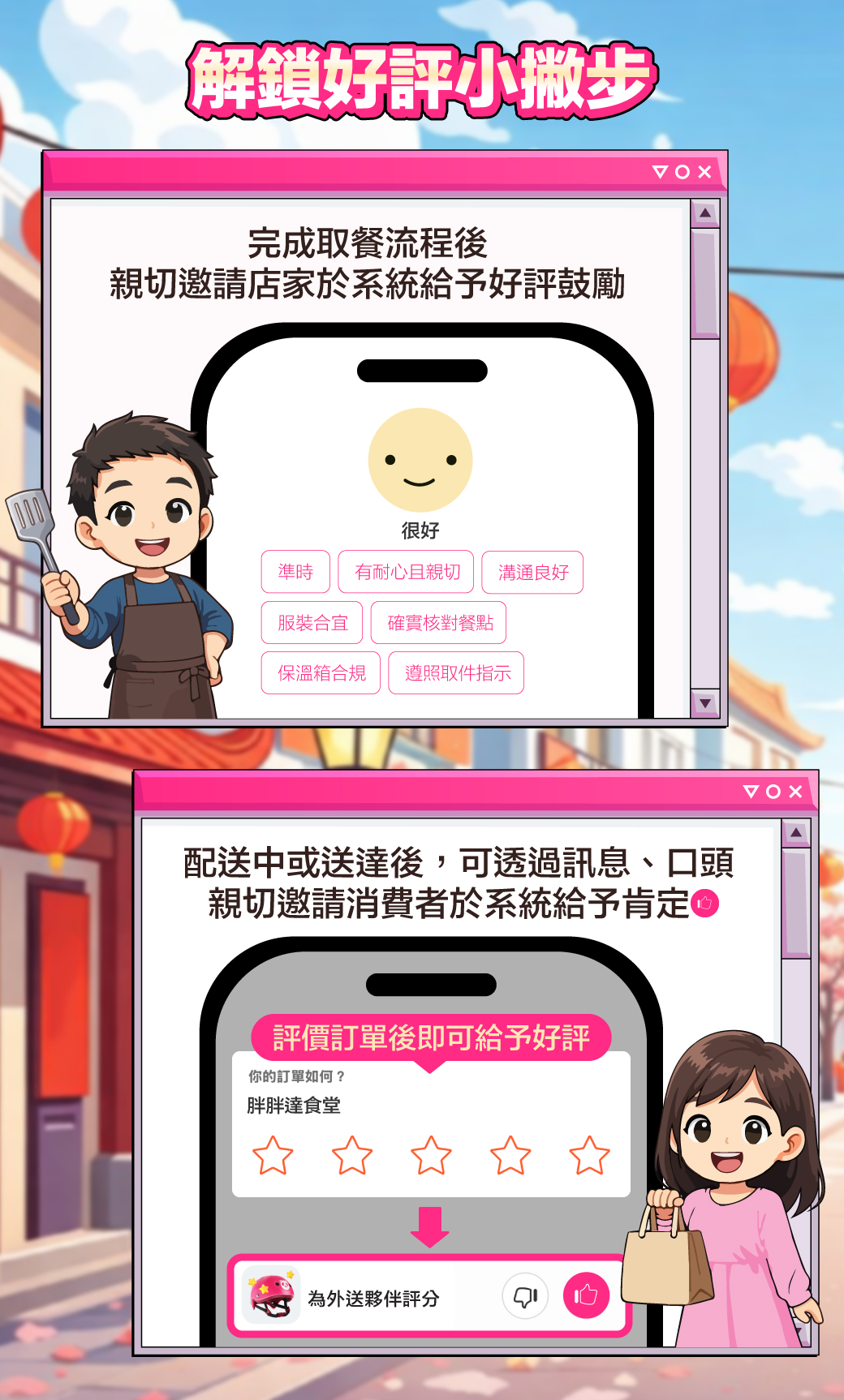 - 於活動區間內收集來自消費者與店家的好評!集滿解鎖即可參加抽獎!