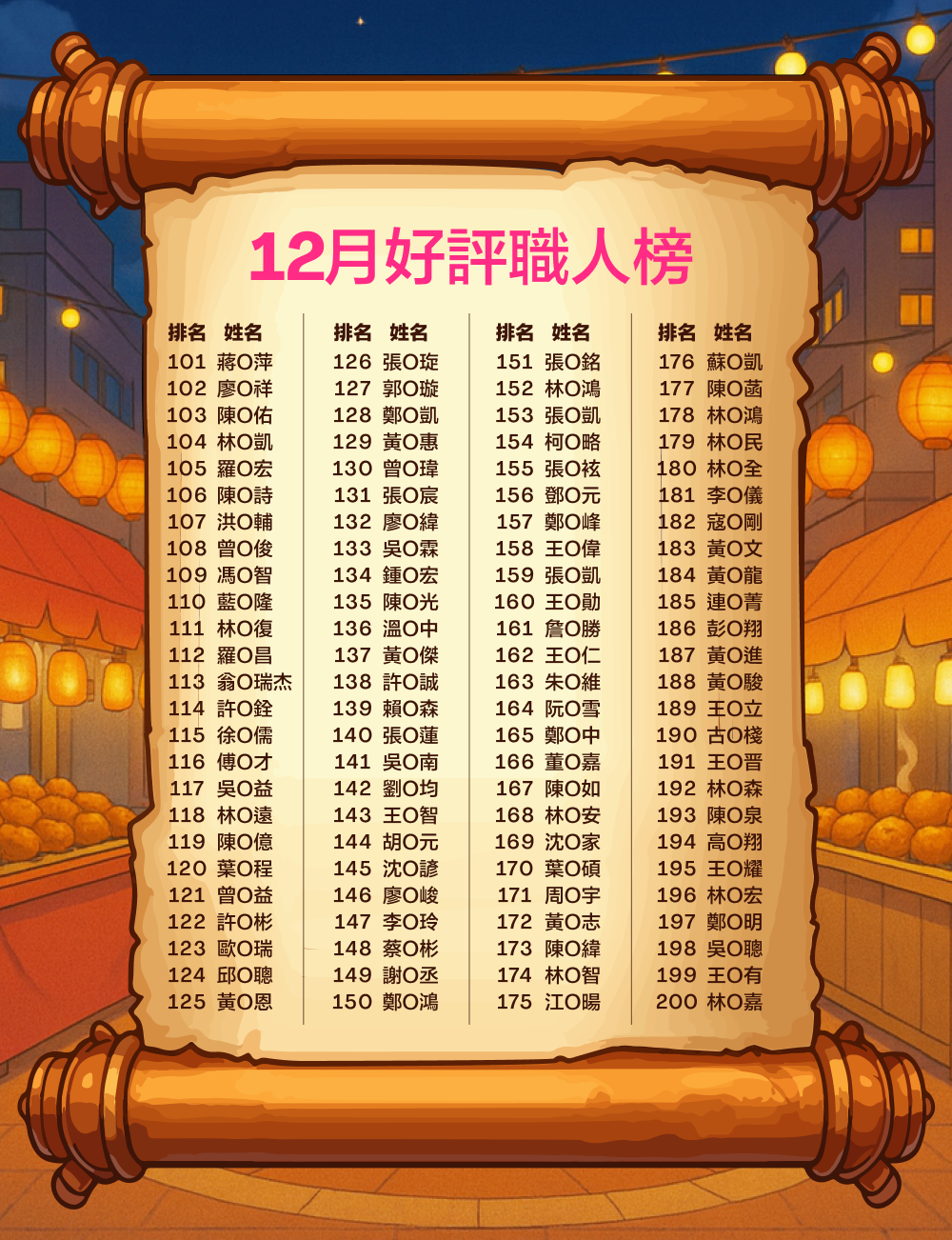 - 活動條件:12月活動結算累積消費者好評前 200 名,並解鎖 1 個店家好評