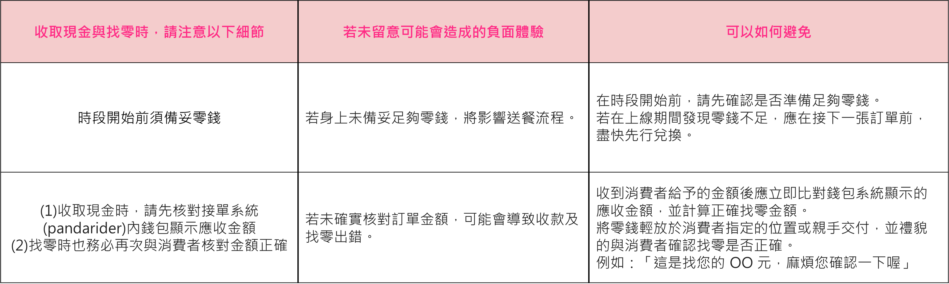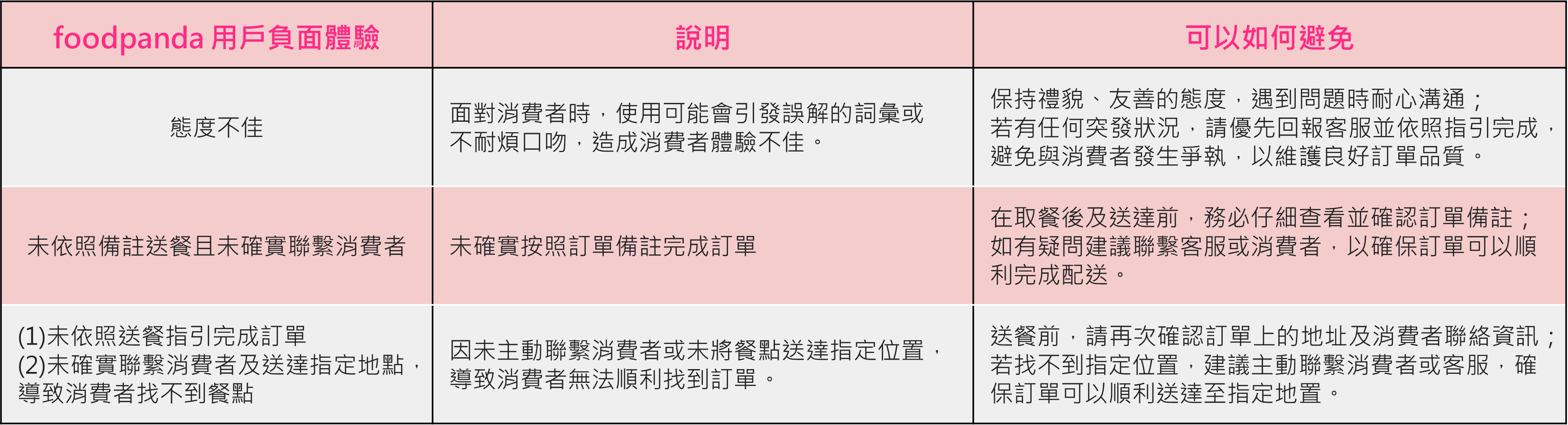 希望以上指引能協助外送夥伴在提供良好品質的同時,也能避免造成foodpanda合作用戶的負面體驗。