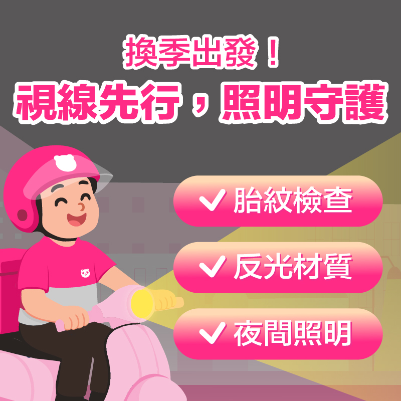 隨著日照時間縮短,夜間騎乘的比例也變高了。夜間視線不佳是事故主因之一,請務必掌握以下夜間騎乘要領,讓你看得清、也讓別人看得到你,平平安安完成每一次任務。