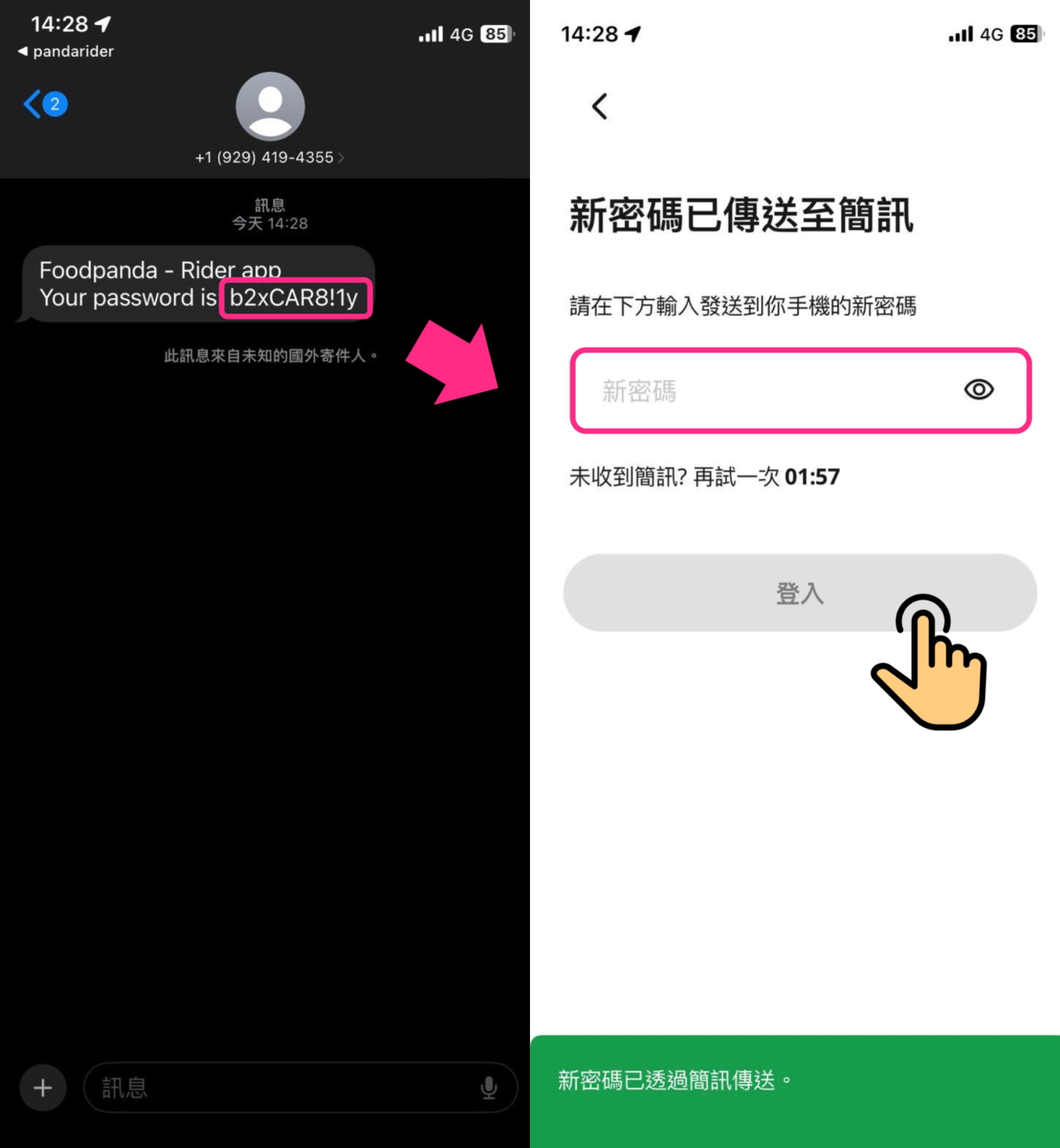Step3:將簡訊中的密碼輸入新密碼欄位,並按下登入