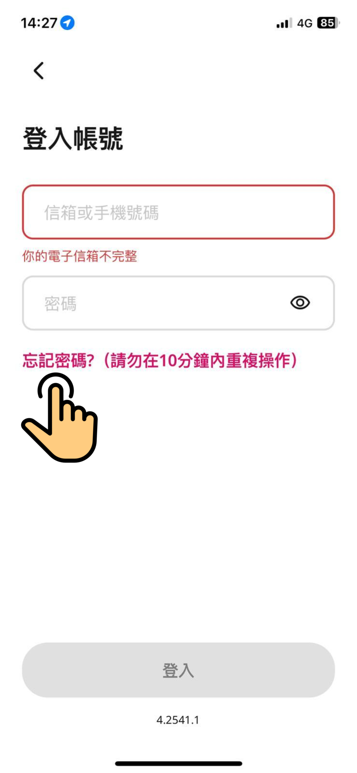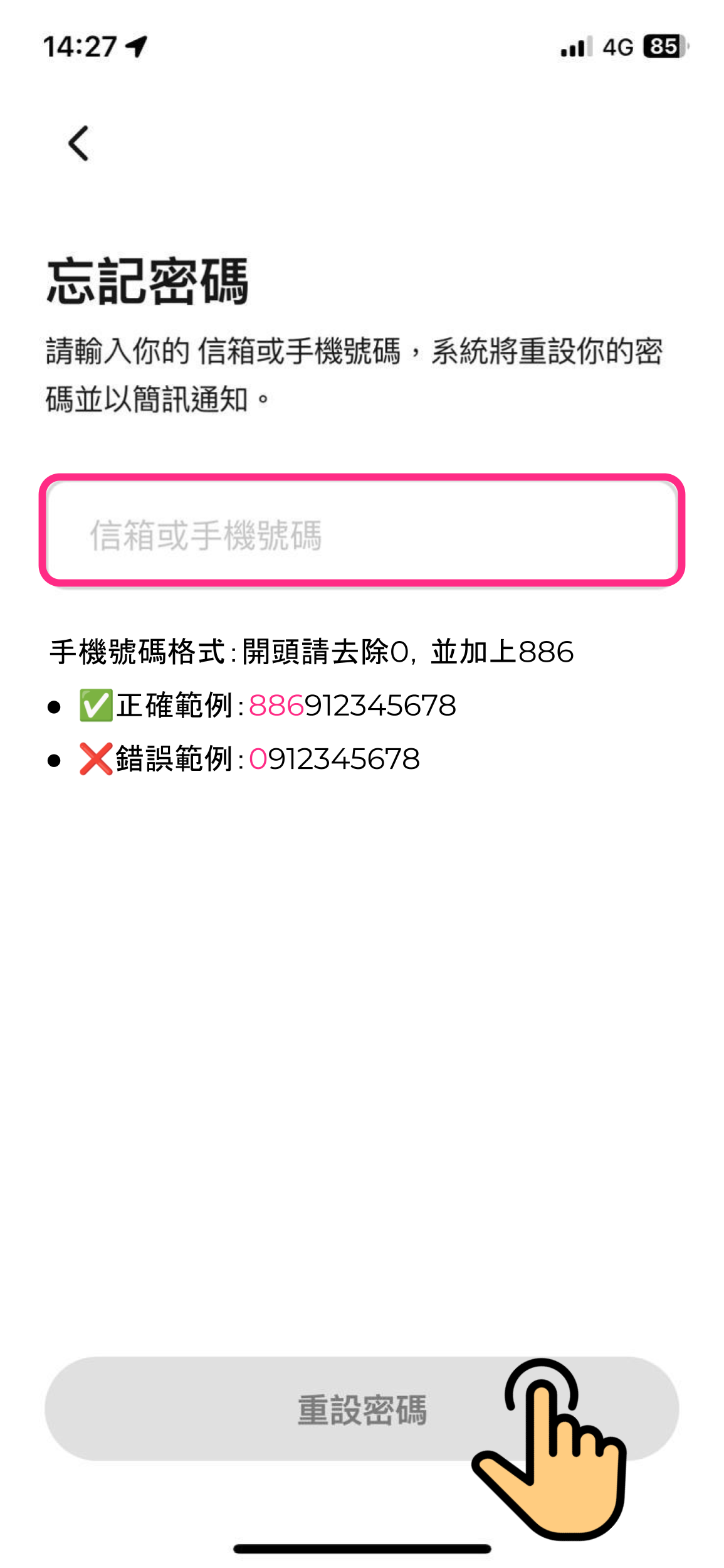 Step2:請輸入你註冊的信箱或手機號碼(務必兩種方式皆嘗試,並注意格式正確性!)