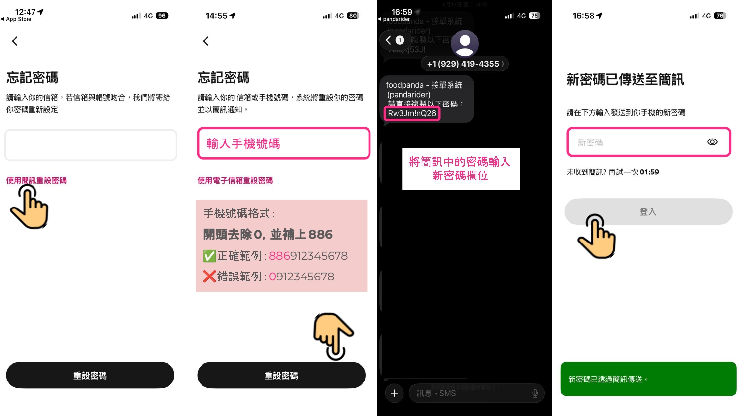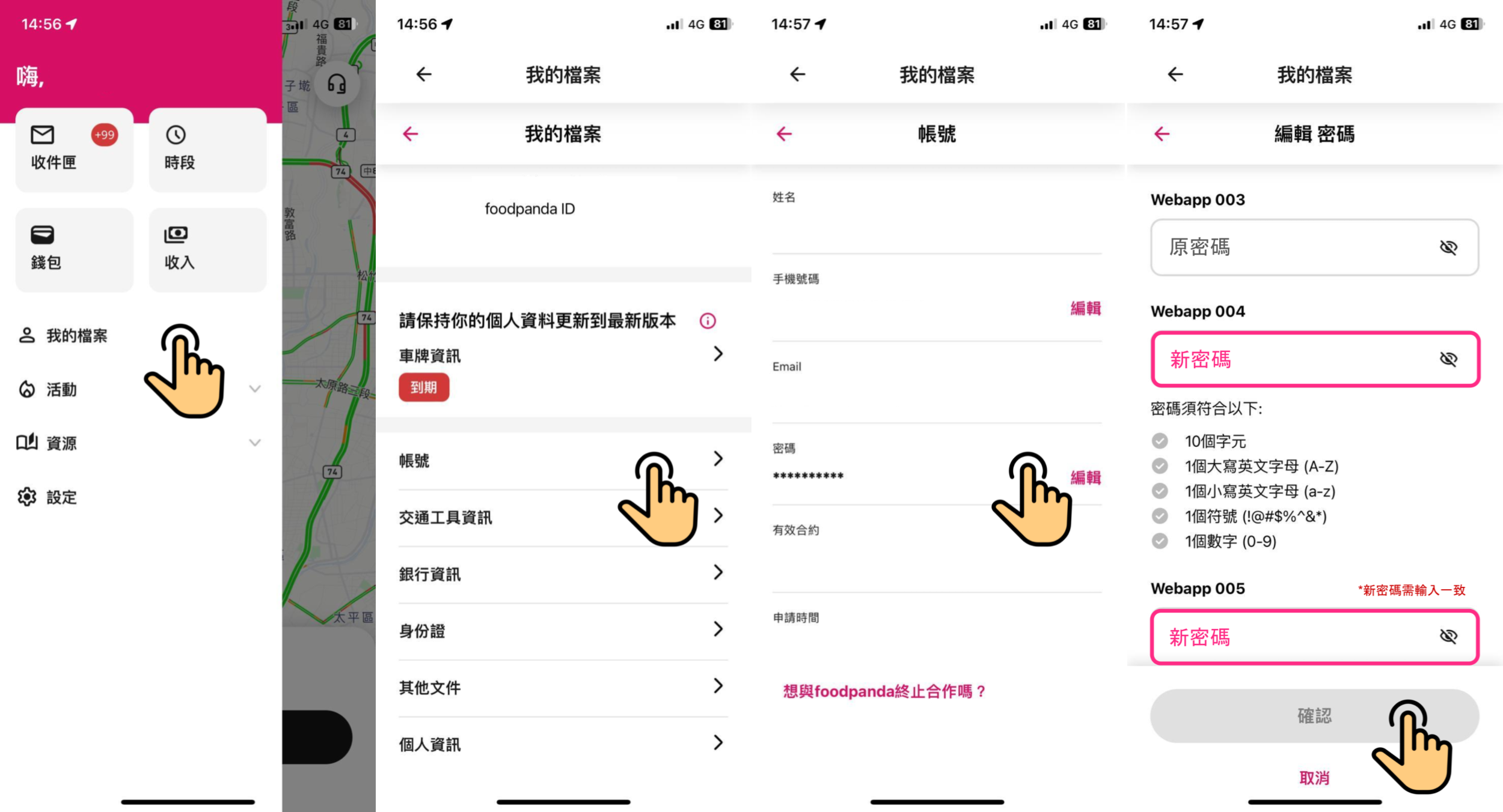 ※ 請勿將新密碼設定為foodpanda的預設密碼