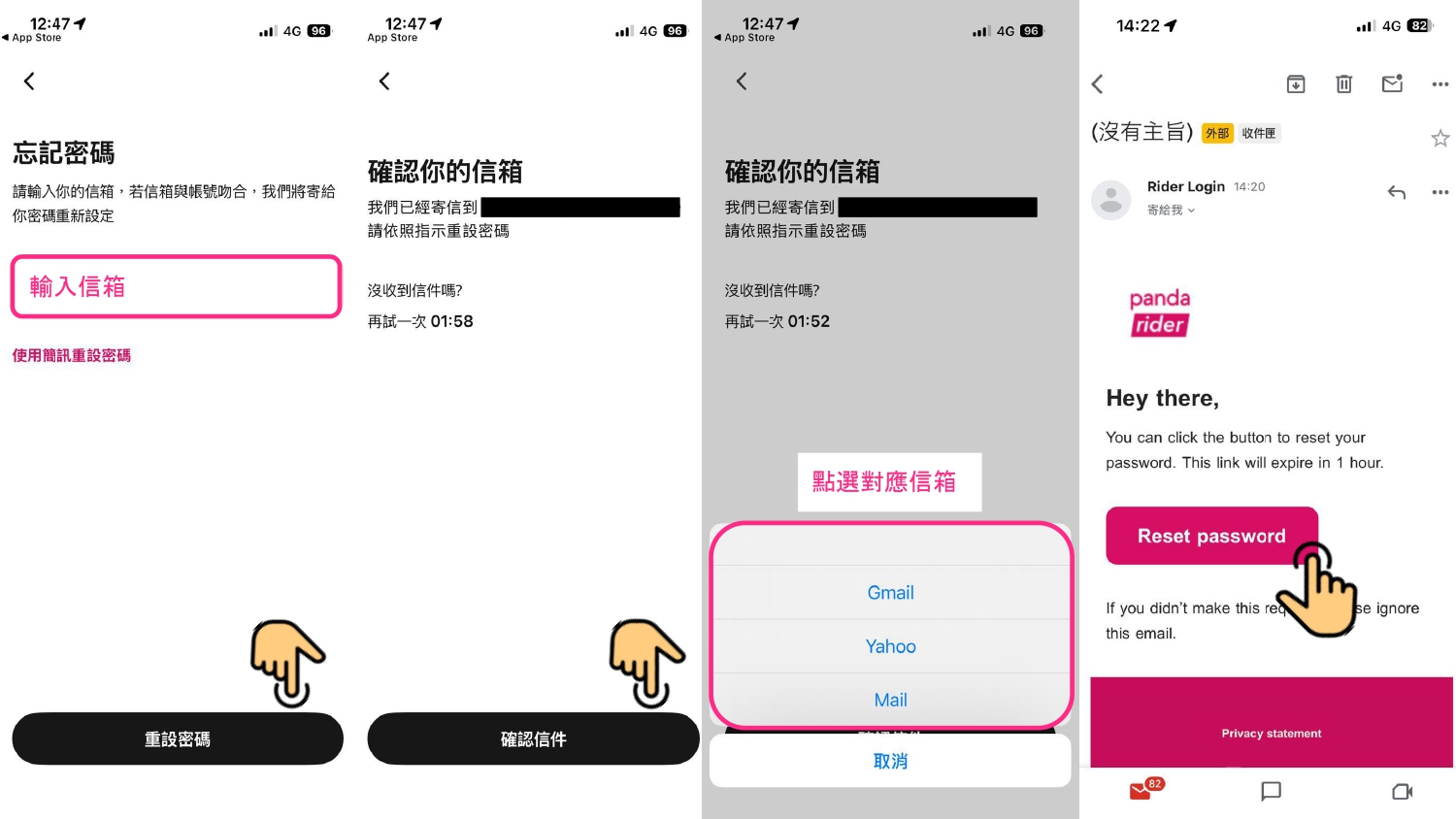 Step1:於接單系統(pandarider)登入頁面點選『忘記密碼?』