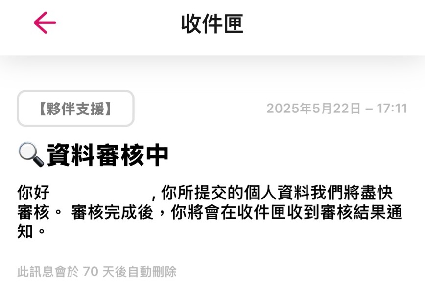 📢資料審核中,無法重複提交。如果有問題,請在審核完成後,再次提出申請。