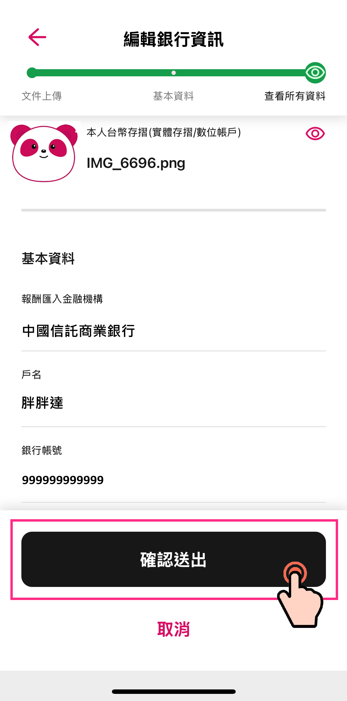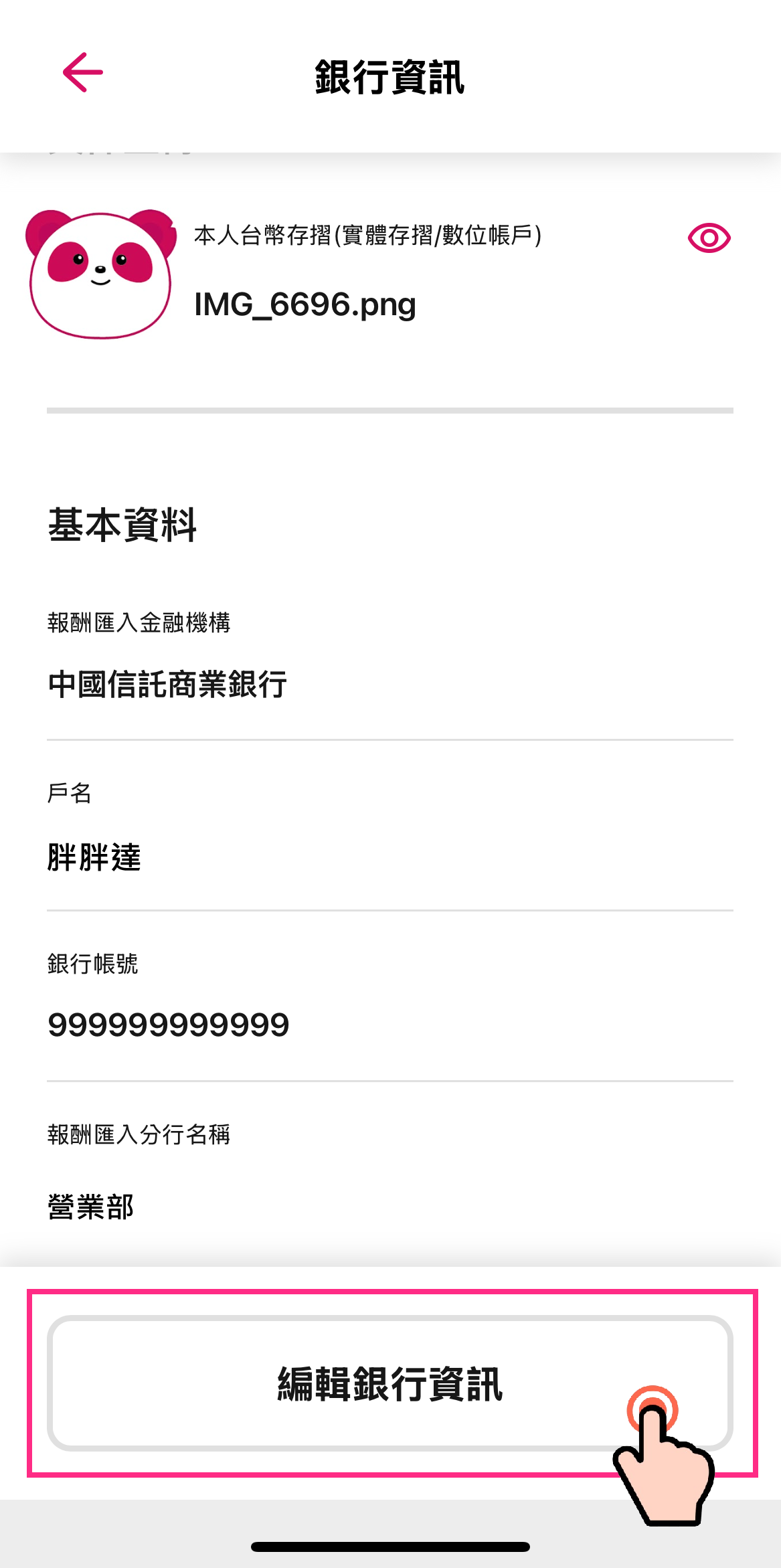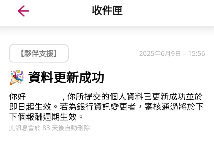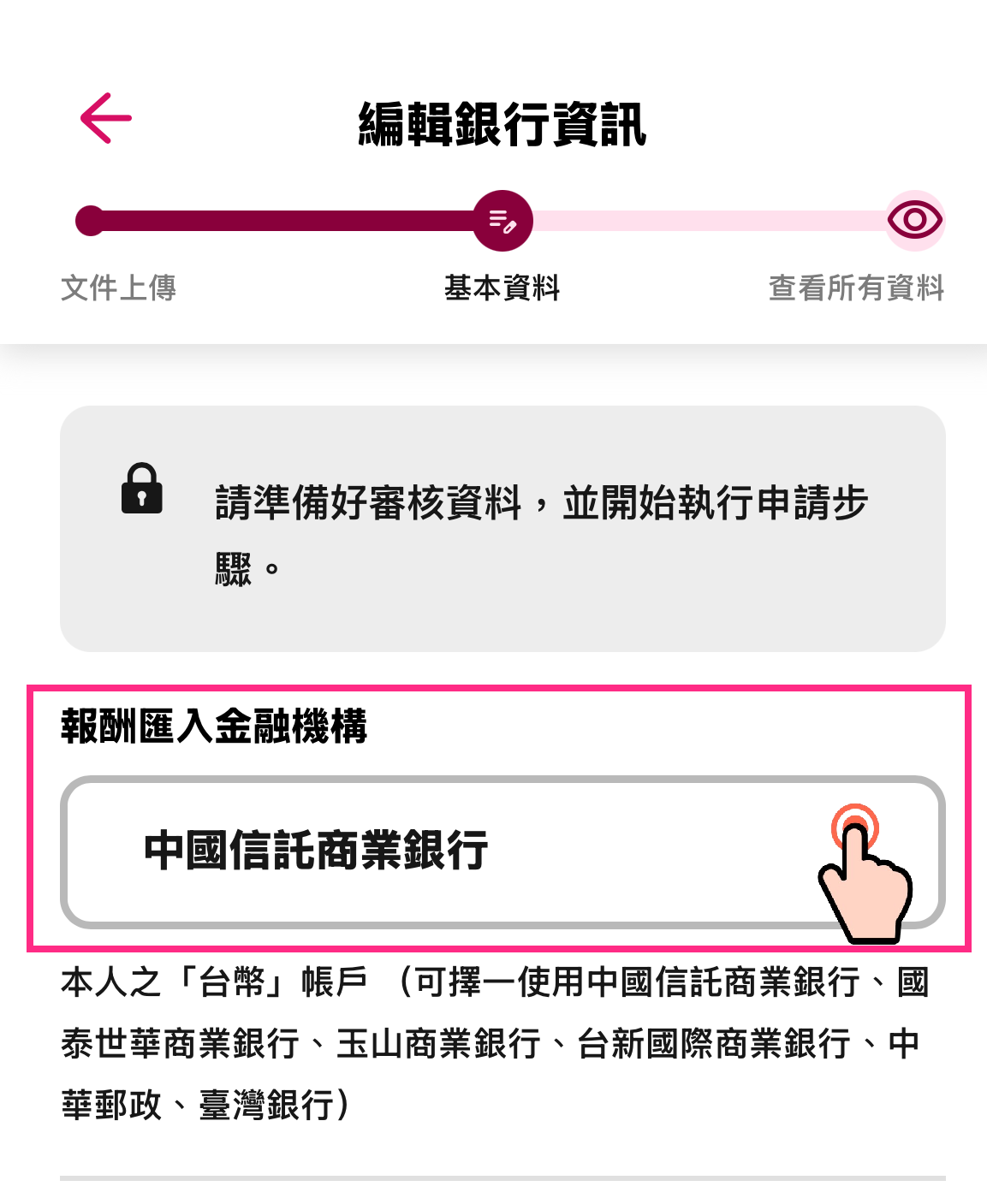 📢注意:若為銀行資訊變更者,審核通過將於下下個報酬週期生效。
